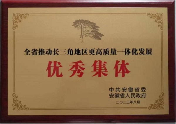 近日,国产999精品久久久久久受到中共安徽省委、安徽省人民政府表彰,被授予“全省推动长三角地区更高质量一体化发展优秀集体”称号。