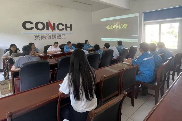 昌江塑品党支部组织党员干部观看《持续发力 纵深推进》警示教育片。