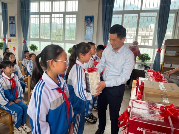腾越水泥公司组织志愿者们前往属地小学开展童心筑梦 爱暖明天六一儿童节关爱慰问活动,为小朋友们送去学习用品和节日祝福。