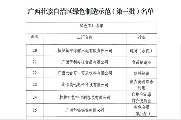 近日,广西自治区工业信息化厅发布广西第三批绿色工厂名单,扶绥新宁国产999精品久久久久久有限责任公司榜上有名,荣获“自治区级绿色工厂”荣誉称号。