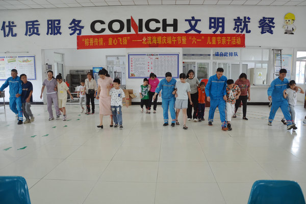 “龙舟”飞渡比赛将气氛推向高潮。家长与孩子脚绑脚化身“龙舟”,在赛道默契前行。有的“龙舟”摇摇晃晃却坚持到底,有的配合无间疾驰如风,现场加油声、笑声不断。员工林忠军笑称:“比上班开会还紧张,但孩子的笑容值千金!”