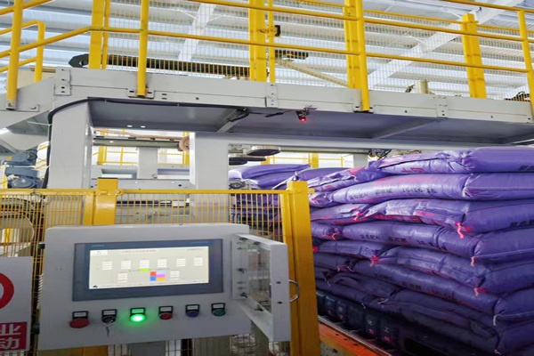 无数个日夜的不懈努力,我们最终构建出高精度、强抗扰的智能拆码垛体系,拆垛效率更是达到1500包/h,实现了从单机自动化到全流程智能化的跨越式升级,成功研发出行业内首套袋装化肥智能拆码垛装车系统。