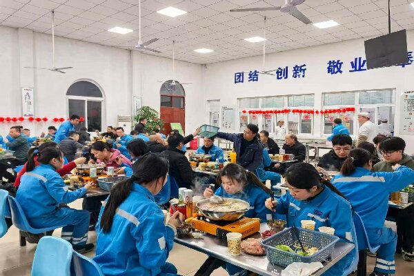趣味竞赛结束后,暖胃暖心的特色小火锅环节温馨开启。鲜香浓郁的锅底、琳琅满目的食材,让员工们在寒冬中感受到了家的温暖与企业的关怀。大家围坐一桌,举杯畅谈,分享着工作中的趣事与生活中的感悟,每位员工也依次分享了新年愿望,现场其乐融融,暖意浓浓。与此同时,厂区内早已换上了“新年盛装”,红灯笼、新年窗花等装饰错落有致,处处洋溢着喜庆祥和的节日氛围,让每一位员工都能沉浸式感受元旦的喜悦。